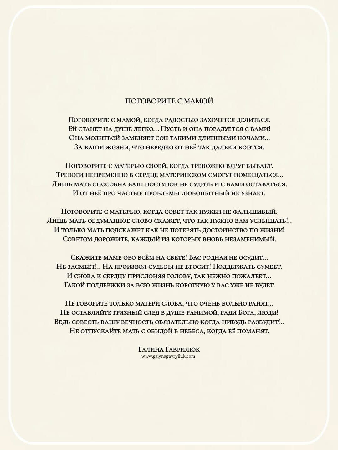 Поговорите с матерью своей, когда тревожно вдруг бывает.
