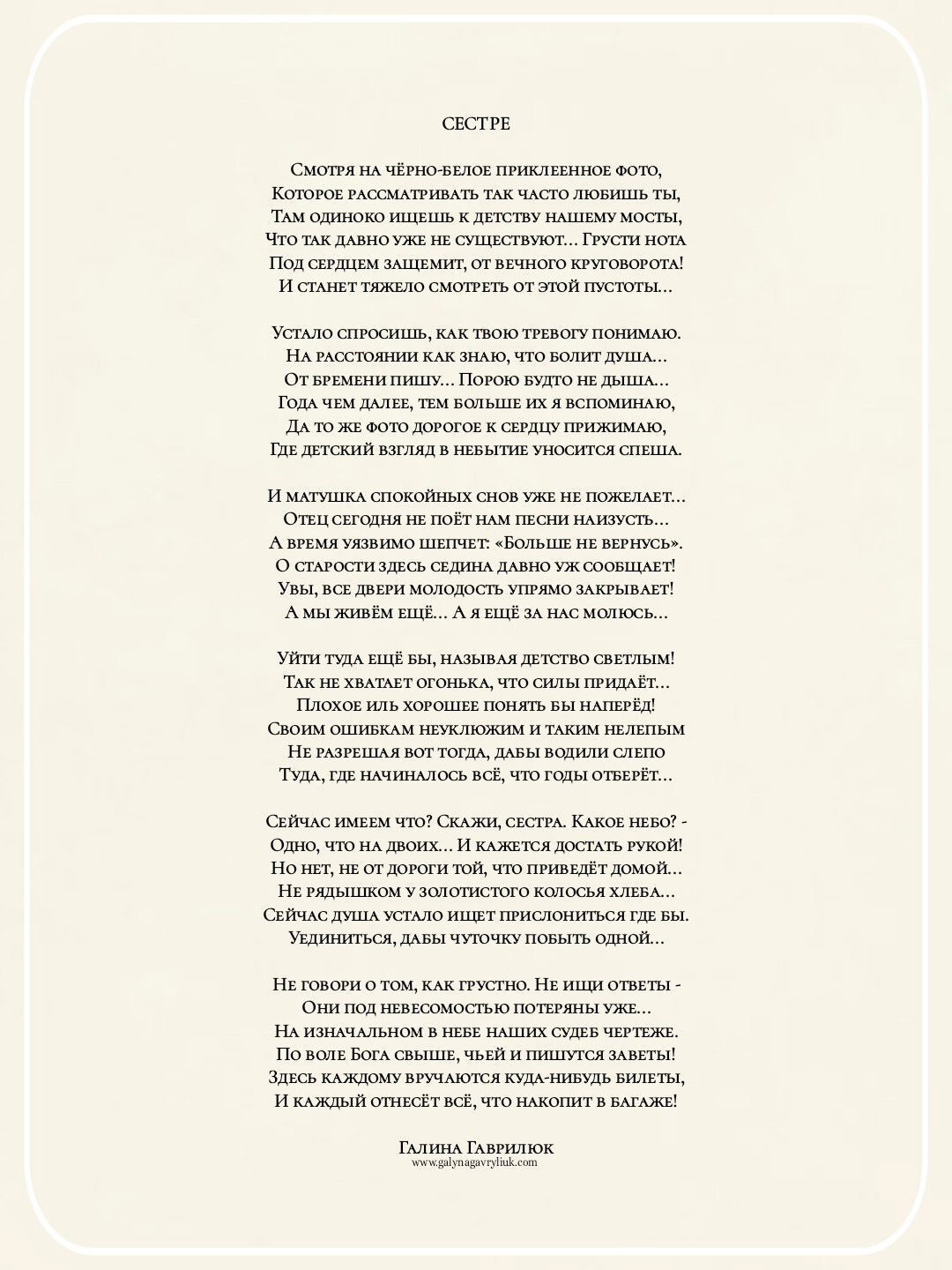 А время уязвимо шепчет: «Больше не вернусь».