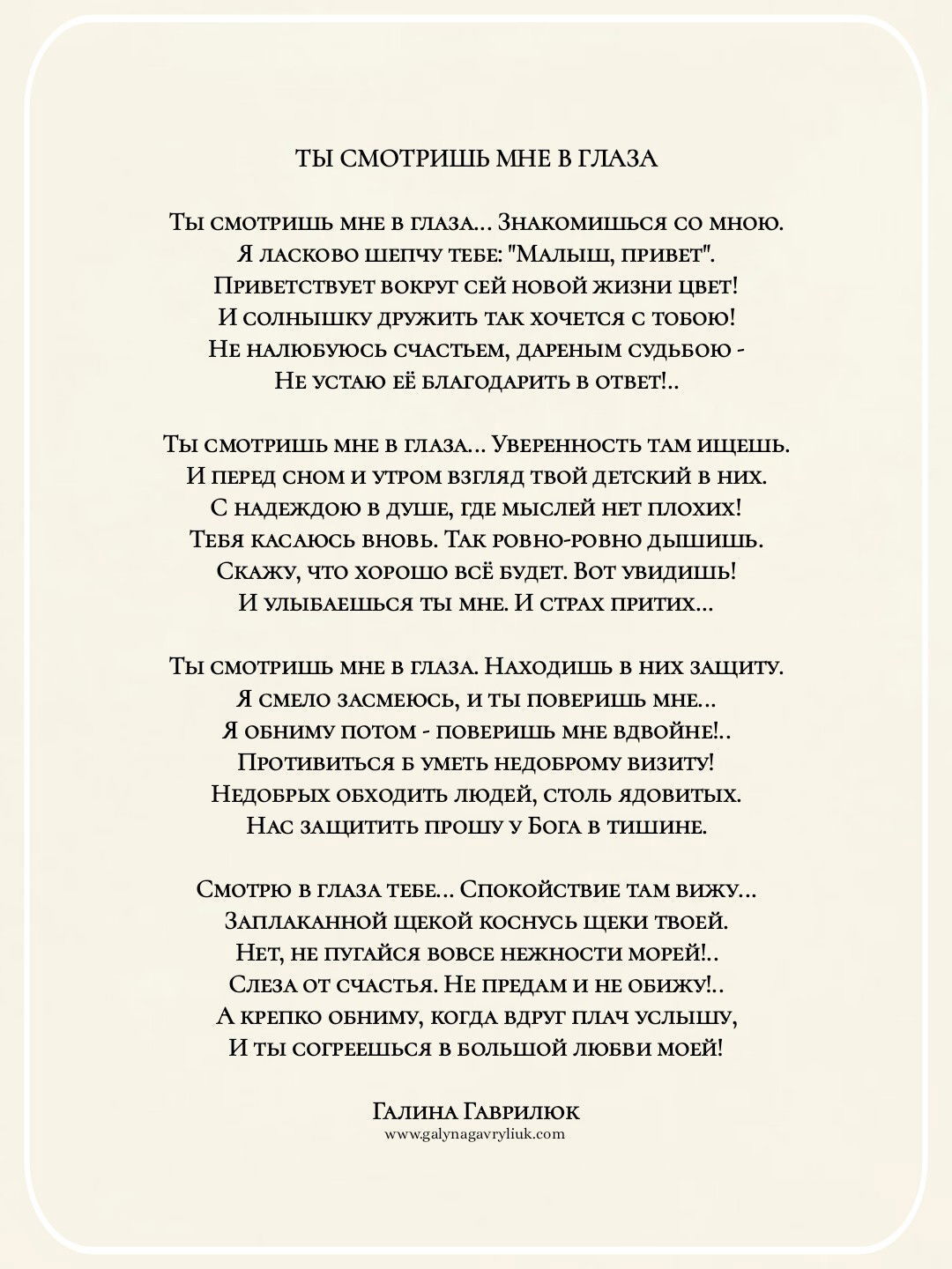 Смотрю в глаза тебе... Спокойствие там вижу...