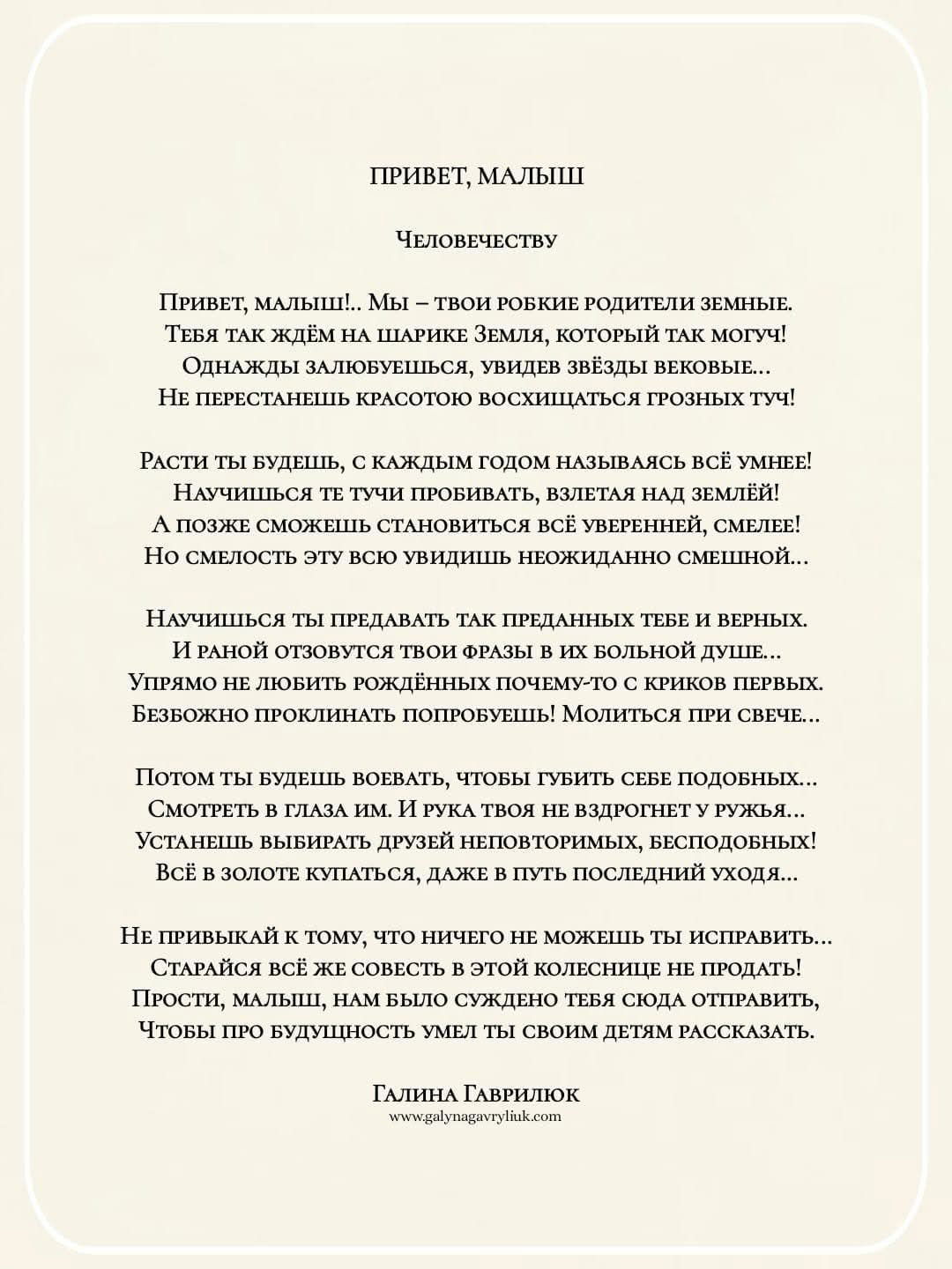Привет, малыш!.. Мы – твои робкие родители земные.