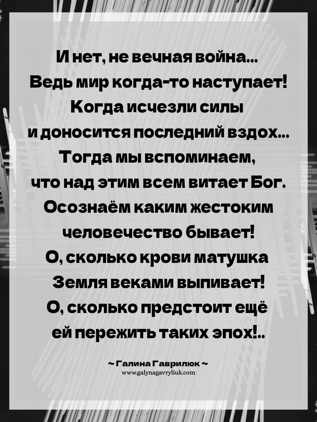 И нет, не вечная война… Ведь мир когда-то наступает!