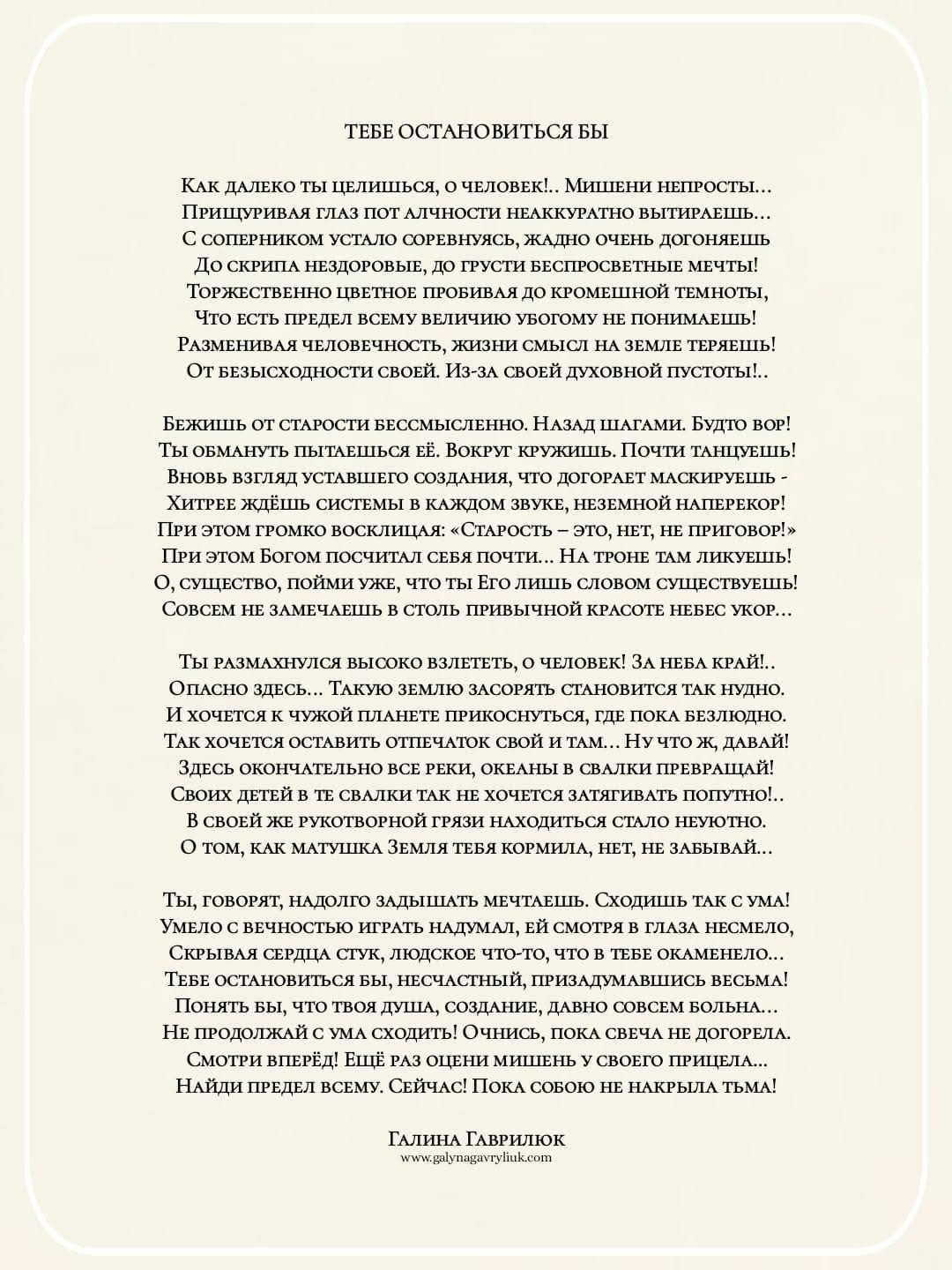 Тебе остановиться бы, несчастный, призадумавшись весьма!