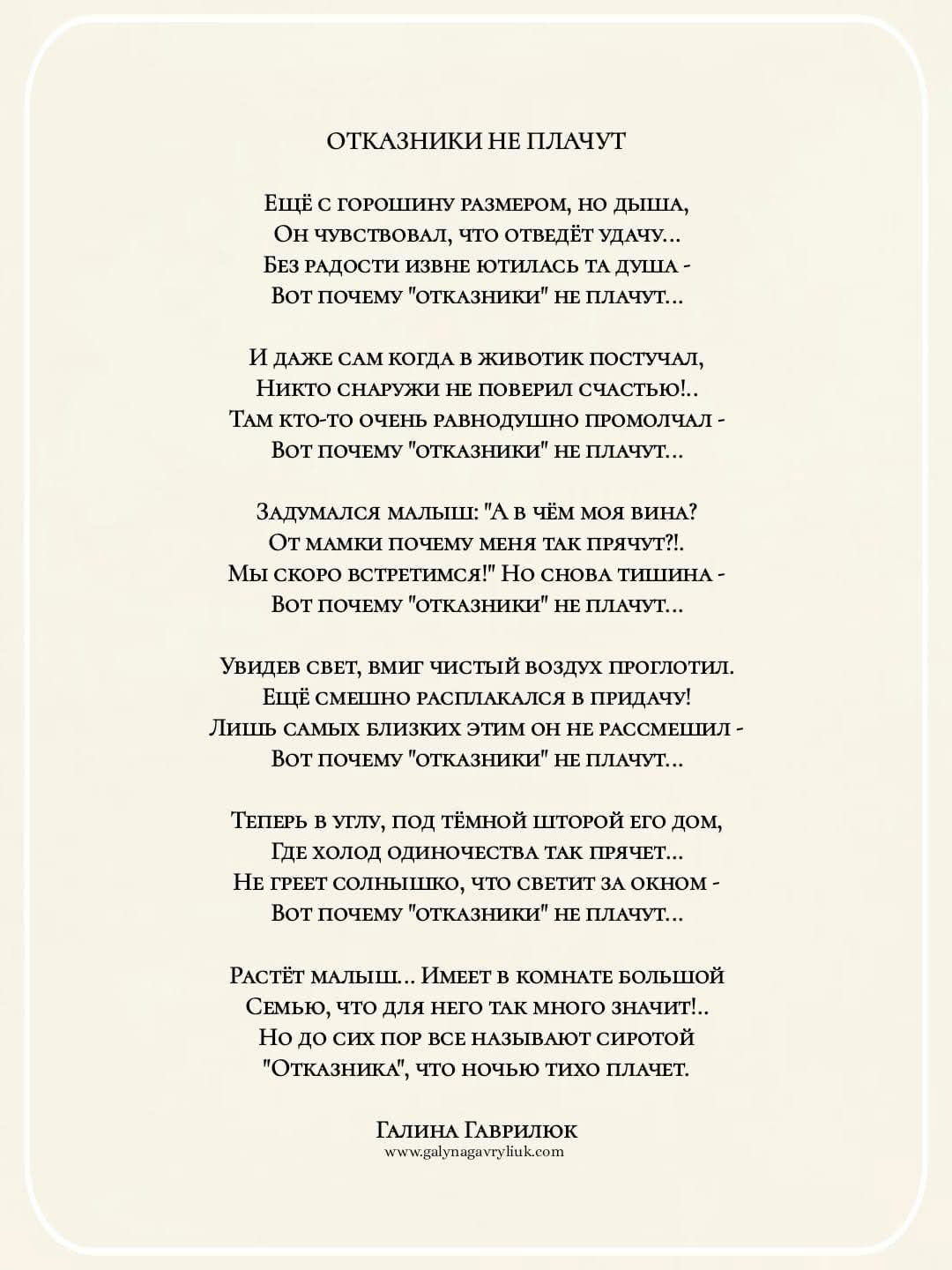 "Отказника", что ночью тихо плачет.