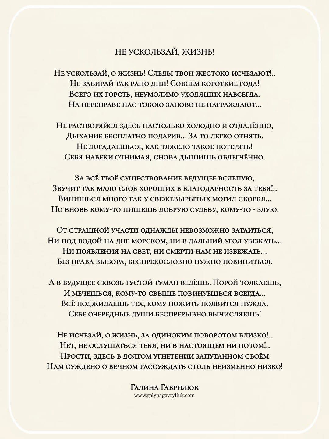 Не ускользай, о жизнь! Следы твои жестоко исчезают!..
