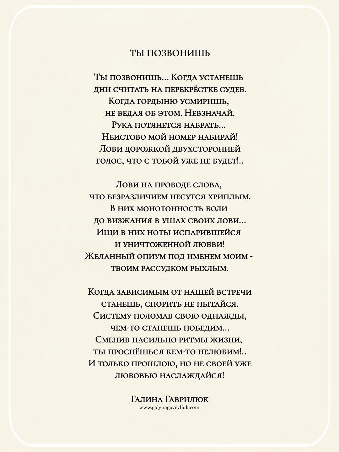 Ты позвонишь... Когда устанешь дни считать на перекрёстке судеб.