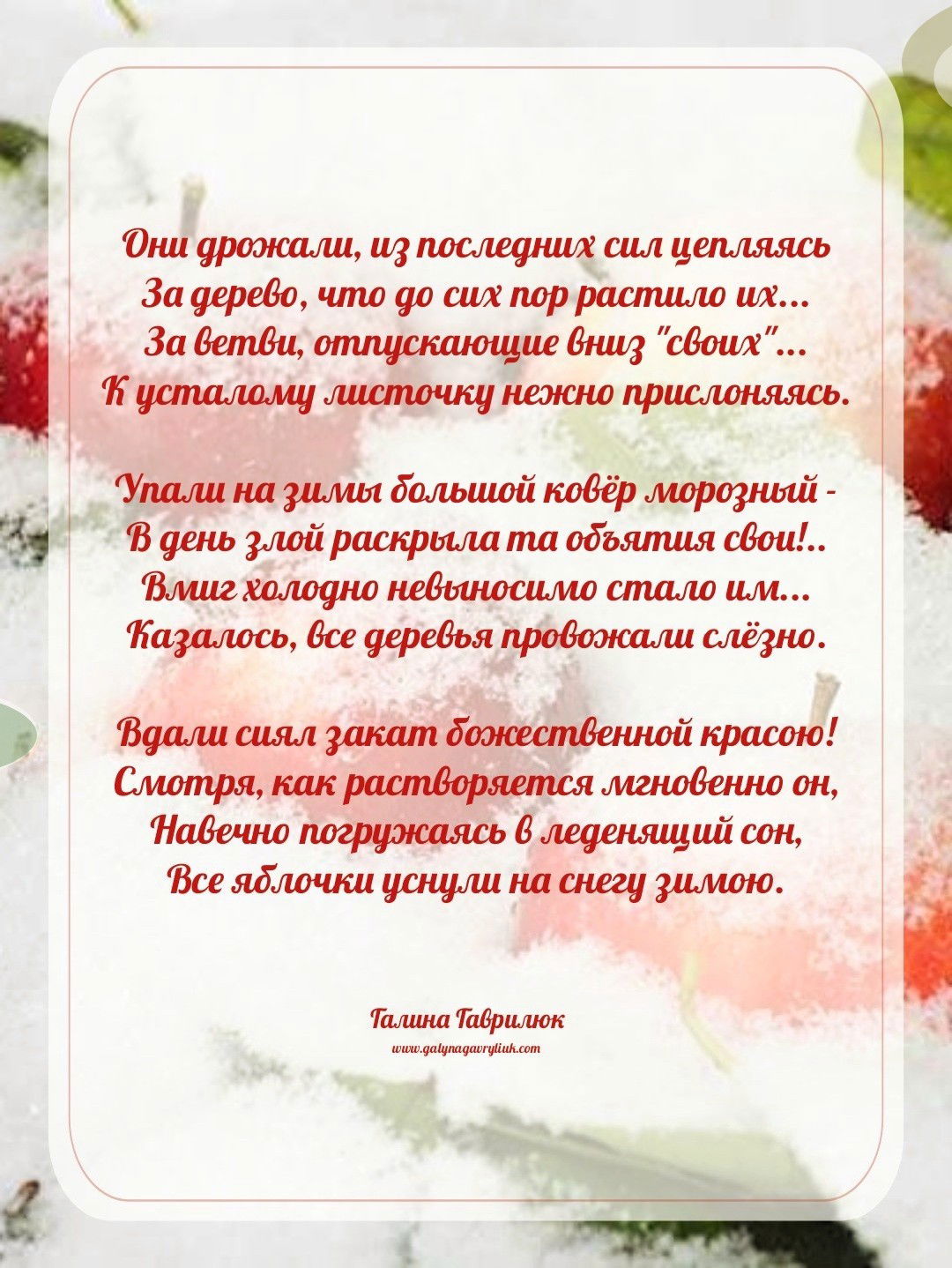 Все яблочки уснули на снегу зимою.