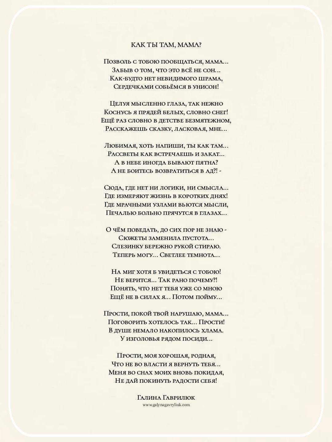 Прости, покой твой нарушаю, мама...